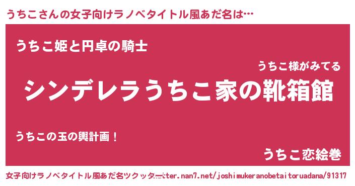 | 胡散臭い通販商品みたいなあだ名 | 『必ず成功するブレスレット…その名も「うちこ」』 |