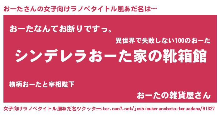 | 男性向けラノベタイトル風あだ名 | 『緋弾のオータ』『魔法科高校のおーた』 |