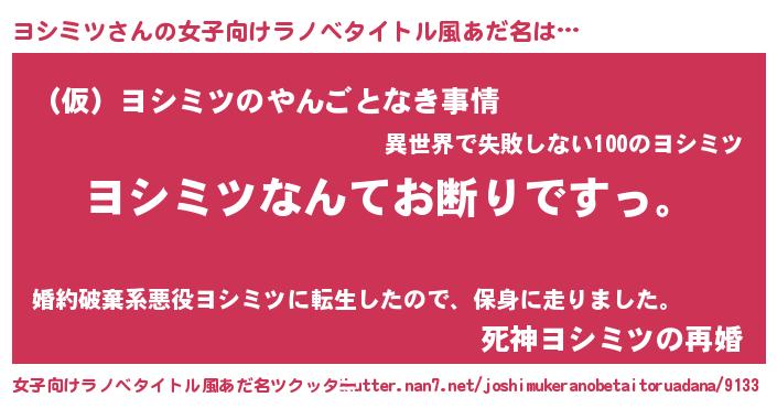 | ファンタジー風あだ名 | 『ゼヨシトゥ』『ヨシフェル』 |