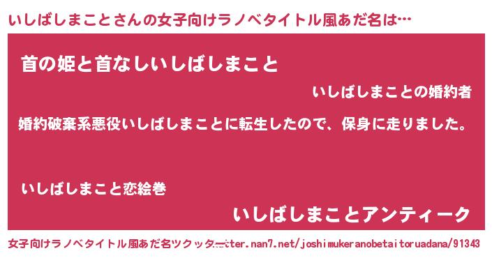 | 男性向けラノベタイトル風あだ名 | 『転生したらいしばしまことだった件』 |