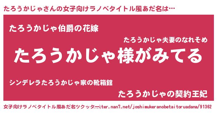| 男性向けラノベタイトル風あだ名 | 『たろうかじゃの嫁は女の子じゃないと思った?』 |