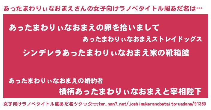 | 男性向けラノベタイトル風あだ名 | 『緋弾のアッタマワリィナオマエ』 |