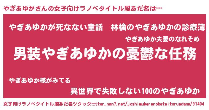 | 男性向けラノベタイトル風あだ名 | 『うちのやぎあゆかが世界を掌握している!』 |