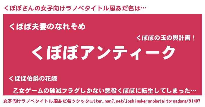 | 男性向けラノベタイトル風あだ名 | 『魔法科高校のくぼぼ』 |