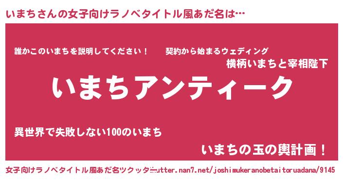 | 男性向けラノベタイトル風あだ名 | 『魔法科高校のいまち』 |