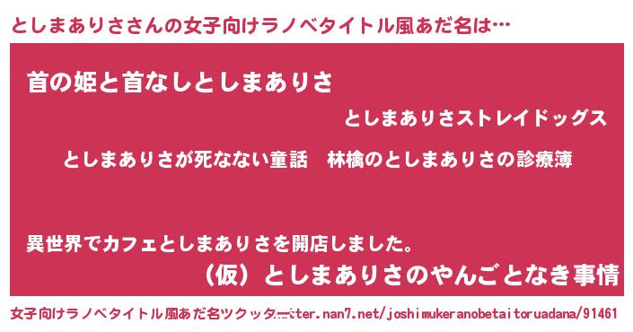 | 意味不明あだ名 | 『住所不定無職としまありさ(12歳)』 |