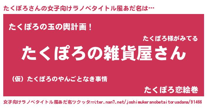 | 男性向けラノベタイトル風あだ名 | 『やはりたくぽろの青春ラブコメはまちがっている 』 |