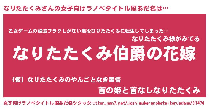 | ファンタジー風あだ名 | 『エターナルナリタタクミー』 |