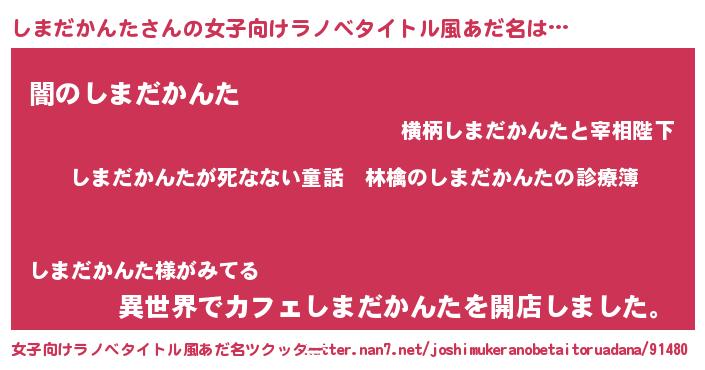 | ヘコむあだ名 | 『しまだかんた(苦笑)』『しまっちょ』 |