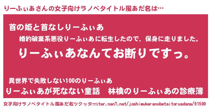 | ヘコむあだ名 | 『りーふぃあ(笑)』『りーぷりん』 |