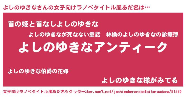 | 意味不明あだ名 | 『自称よしのゆきな』 |