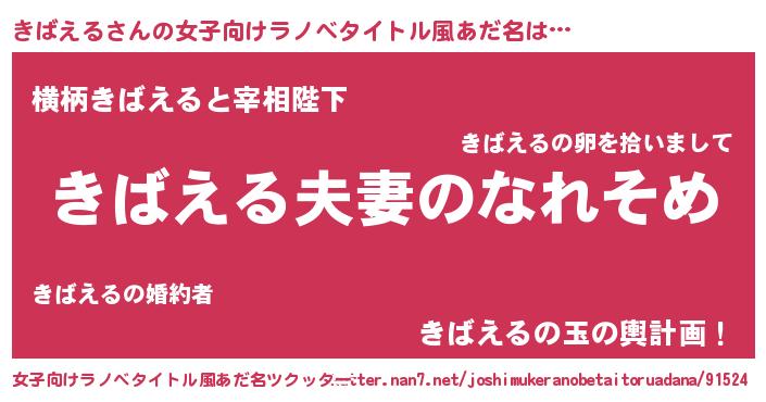 | 男性向けラノベタイトル風あだ名 | 『おまえをオタクにしてやるから、俺をきばえるにしてくれ! 』 |