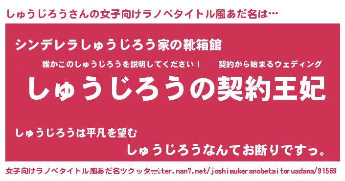 | 男性向けラノベタイトル風あだ名 | 『しゅうじろうという概念が存在しない退屈な世界 』 |