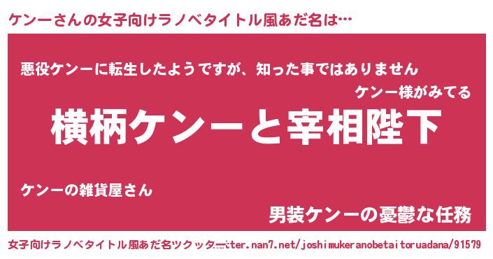 | ヘコむあだ名 | 『ケンっ子』『レバニラ』『ケンもー』 |