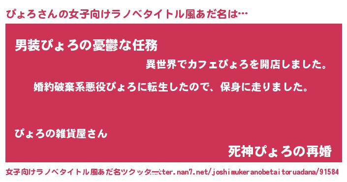 | 男性向けラノベタイトル風あだ名 | 『ピョロスレイヤー』 |