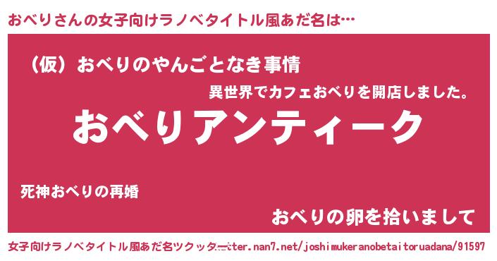 | 意味不明あだ名 | 『自称おべり』『ペロリンおべり』 |