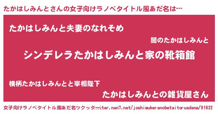 | 男性向けラノベタイトル風あだ名 | 『冴えないたかはしみんとの育てかた』 |