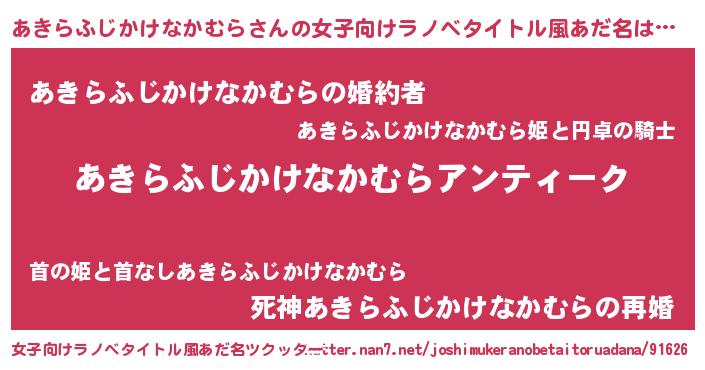| 意味不明あだ名 | 『自称あきらふじかけなかむら』 |