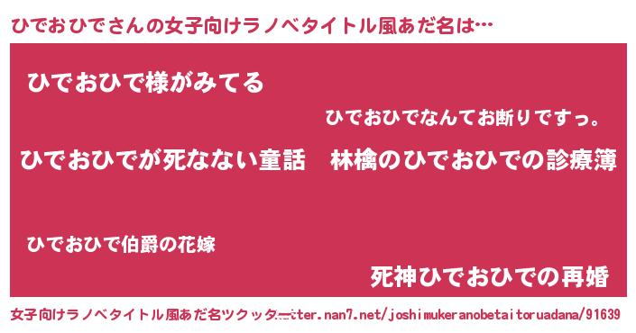 | 意味不明あだ名 | 『住所不定無職ひでおひで(13歳)』 |