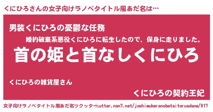 | 胡散臭い通販商品みたいなあだ名 | 『絶対に幸福をもたらす水素水…その名も「くにひろ」』 |