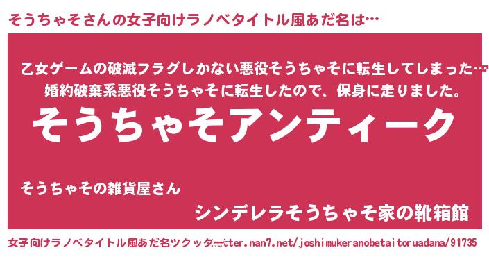 | 意味不明あだ名 | 『自称そうちゃそ』 |