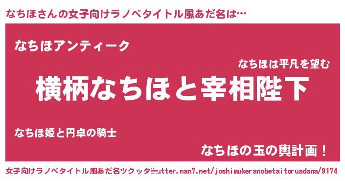 | 男性向けラノベタイトル風あだ名 | 『なちほに滅ぼされるだけの簡単なお仕事です』 |
