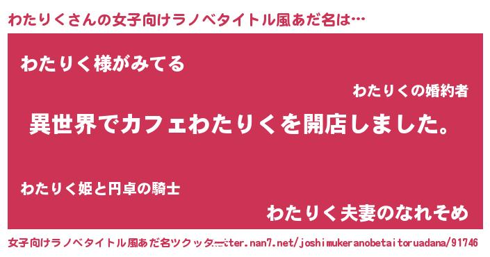 | 男性向けラノベタイトル風あだ名 | 『誰もが恐れるあのわたりくが、ぼくの専属メイドになるようです。』 |