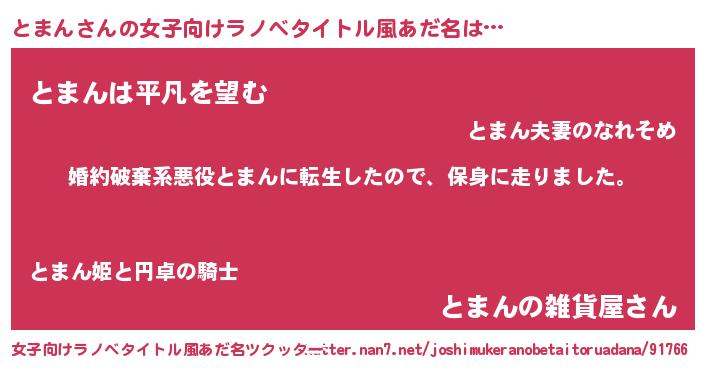| 胡散臭い通販商品みたいなあだ名 | 『信頼と実績のペンダント…その名も「とまん」』 |