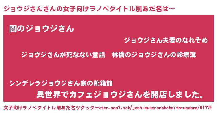 | 意味不明あだ名 | 『住所不定無職ジョウジさん(6歳)』 |