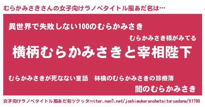 | ヘコむあだ名 | 『むらかみさき(小並感)』『むらっぺ』 |