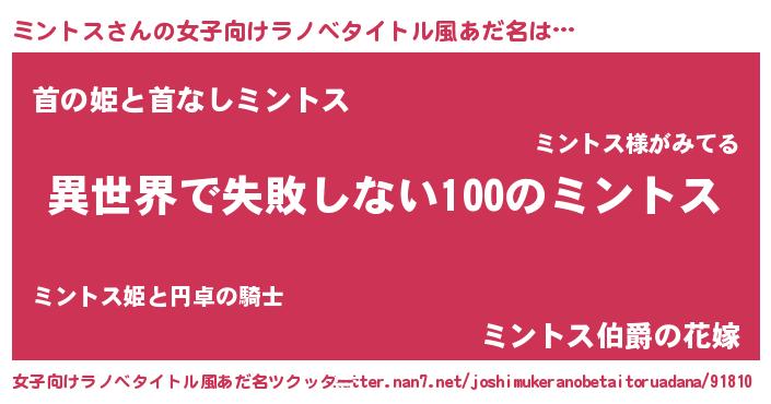| 胡散臭い通販商品みたいなあだ名 | 『絶対に幸福をもたらす水素水…その名も「ミントス」』 |
