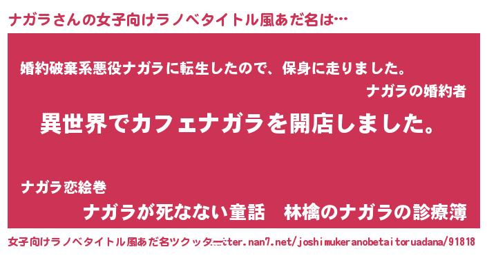 | ヘコむあだ名 | 『ナガラ(笑)』『つくし』『ナガを』 |