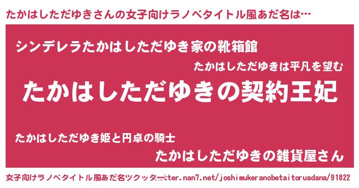 | 胡散臭い通販商品みたいなあだ名 | 『来世でも幸せになれる水素水…その名も「たかはしただゆき」』 |