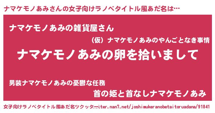 | 欧米人風あだ名 | 『ウサインナマケモノあみ』 |