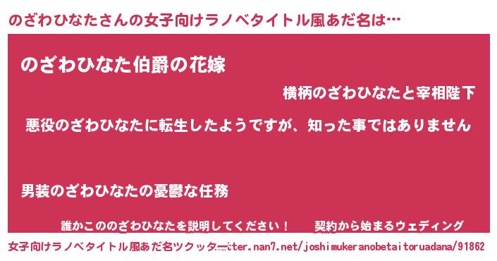 | 男性向けラノベタイトル風あだ名 | 『この素晴らしい世界にのざわひなたを!』 |