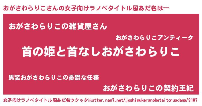 | 男性向けラノベタイトル風あだ名 | 『はたらくおがさわらりこさま!』 |