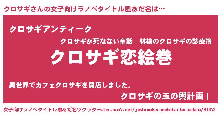 | 男性向けラノベタイトル風あだ名 | 『ノーゲーム・ノークロサギ』 |