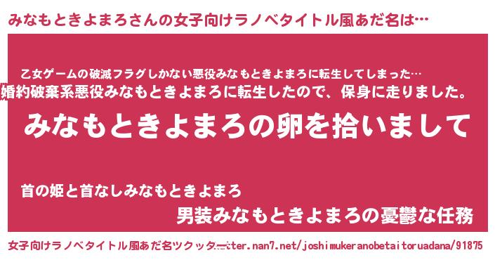| 男性向けラノベタイトル風あだ名 | 『みなもときよまろの嫁は女の子じゃないと思った?』 |