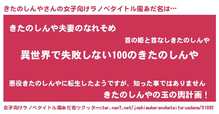 | 男性向けラノベタイトル風あだ名 | 『きたのしんやという概念が存在しない退屈な世界 』 |