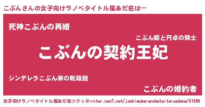 | 胡散臭い通販商品みたいなあだ名 | 『来世でも幸せになれる水素水…その名も「こぶん」』 |