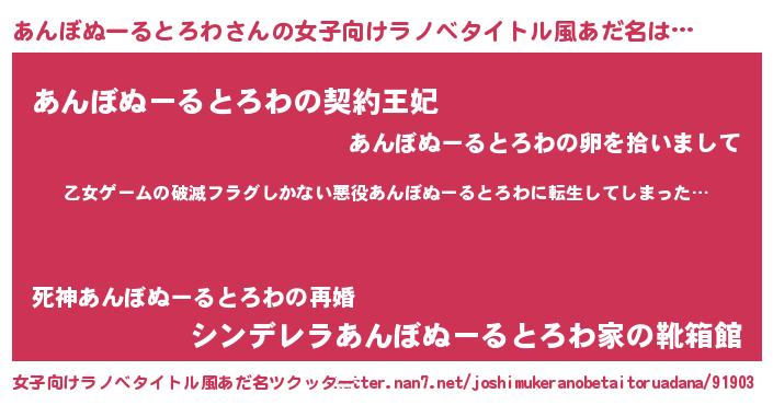 | 意味不明あだ名 | 『住所不定無職あんぼぬーるとろわ(39歳)』 |