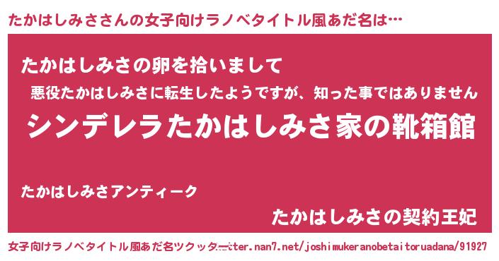 | ヘコむあだ名 | 『たか太郎』『たかはしみさ(苦笑)』 |