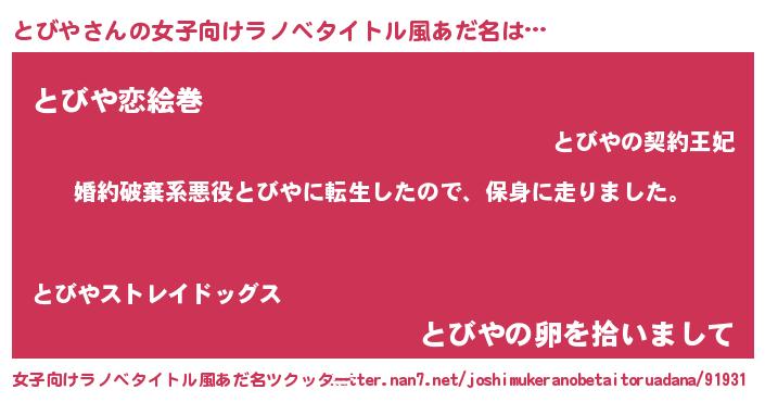 | 意味不明あだ名 | 『エリンギ科とびや属』『永久保存とびや』 |