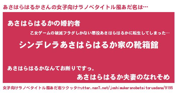 | 男性向けラノベタイトル風あだ名 | 『緋弾のアサハラハルカ』 |
