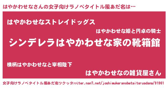 | 意味不明あだ名 | 『自称はやかわせな』 |
