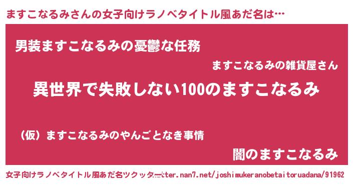 | 男性向けラノベタイトル風あだ名 | 『ますこなるみという概念が存在しない退屈な世界 』 |