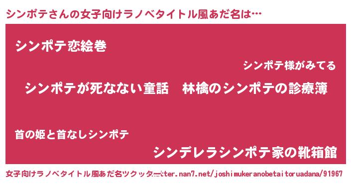| 男性向けラノベタイトル風あだ名 | 『魔弾の王とシンポテ』『緋弾のシンポテ』 |