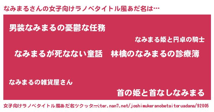 | ヒーロー風カッコイイあだ名 | 『仮面ナミダー』『スーパーナミマル』 |