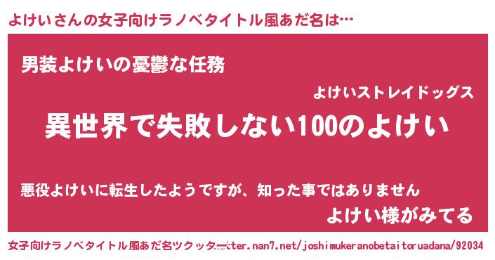 | 男性向けラノベタイトル風あだ名 | 『よけいという概念が存在しない退屈な世界 』 |