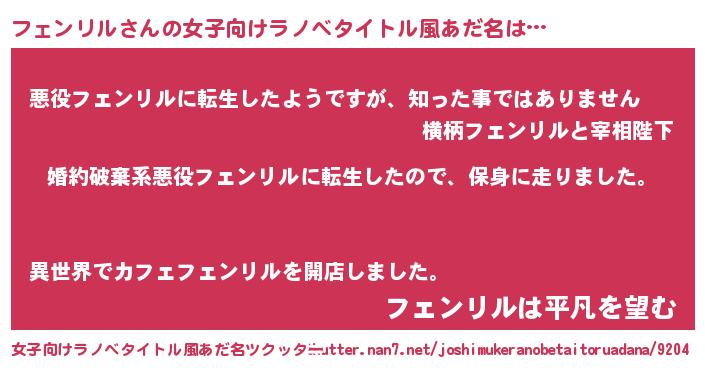 | ヘコむあだ名 | 『フェぷりん』『フェンリル(震え声)』 |